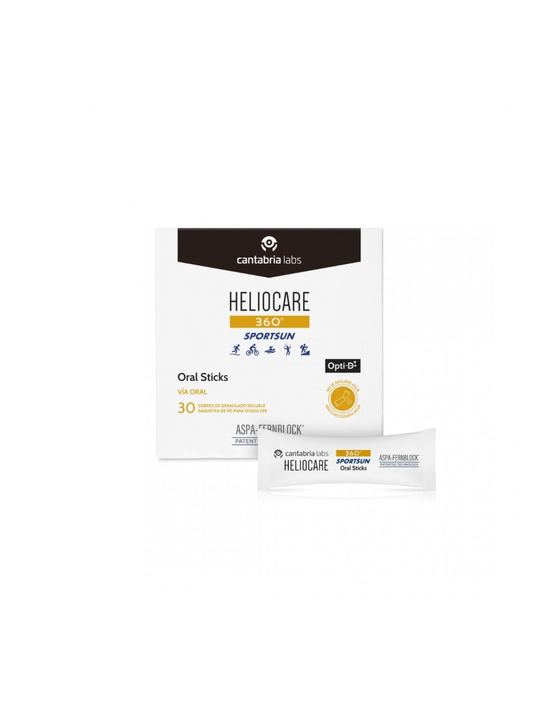Heliocare 360 Sportsun 30 Sticks fotoprotección oral para deportistas en sticks bucodispersables.