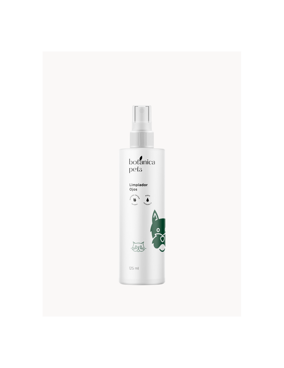 Limpiador de ojos para perros y gatos con Agua de Hamamelism, Aloe Vera y extractos vegetales de Romero y Manzanilla que favorecen la higiene lacrimal y ayuda a prevenir las marcas amarillentas en la zona.
