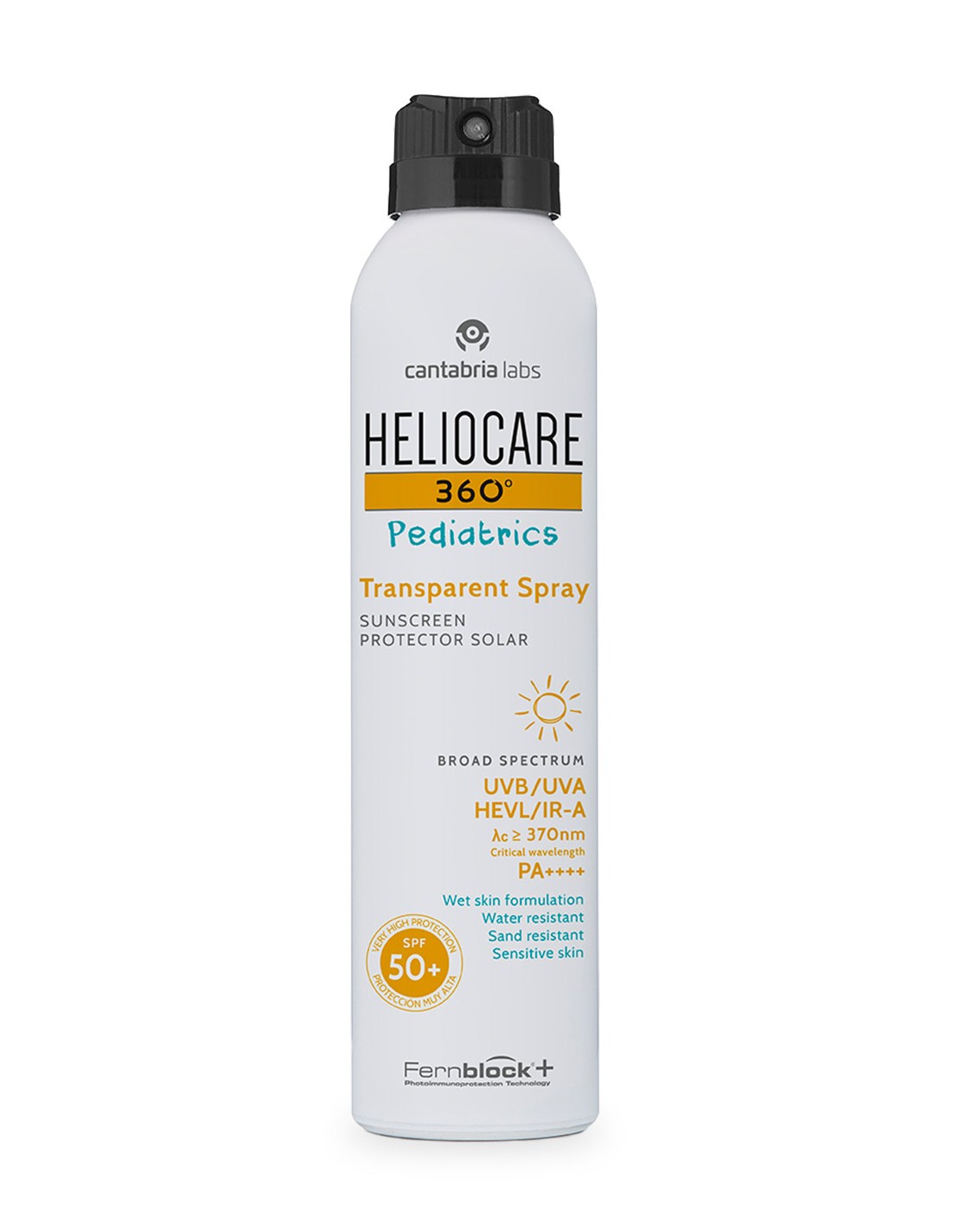 Su formato en spray continuo transparente, permite proteger fácilmente la piel de los niños.