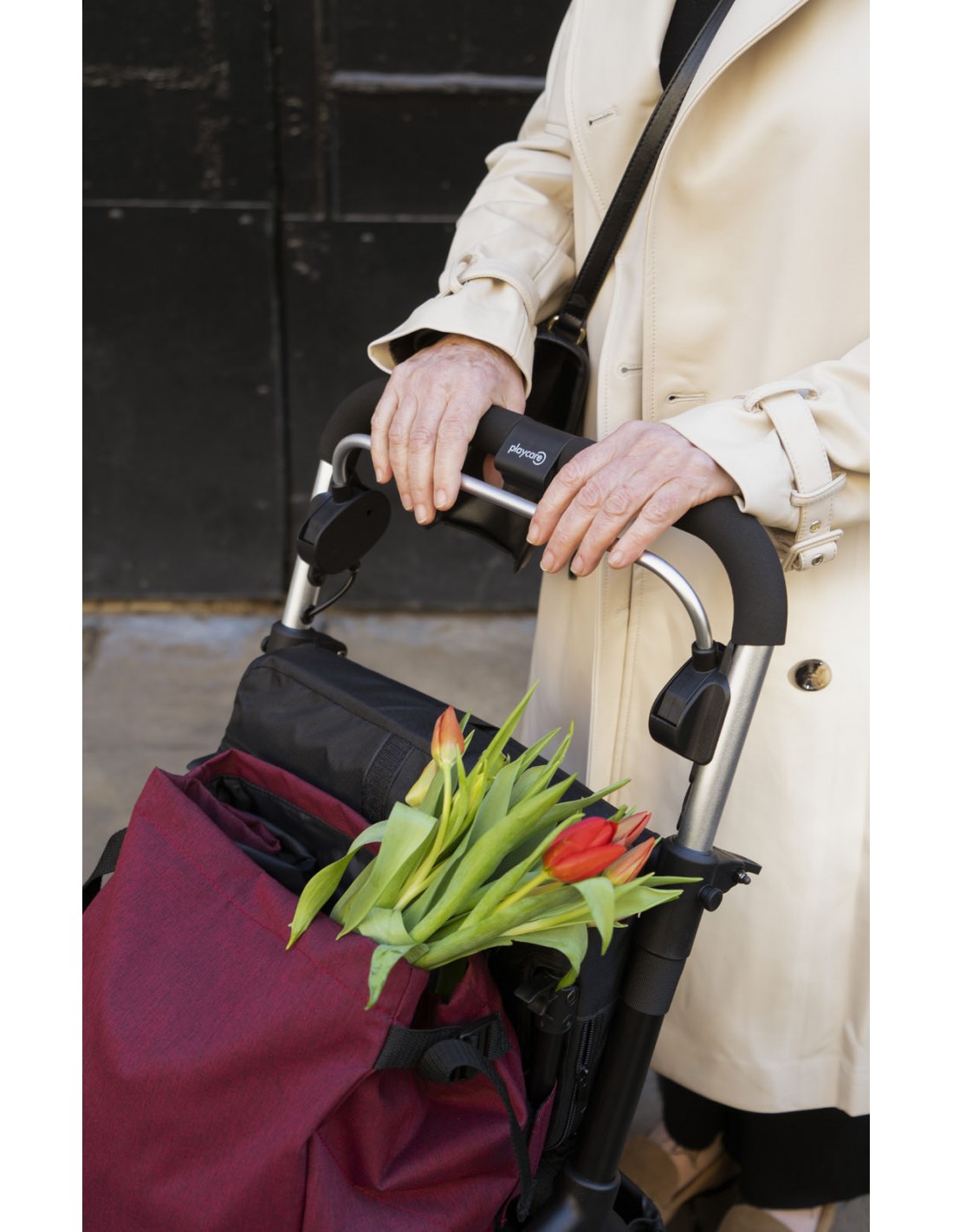 l andador R5 te aporta la confianza que necesitas para llevar un estilo de vida activo e independiente. Su estético y funcional diseño, inspirado en los carros de la compra convencionales, reforzarán tu seguridad para salir y moverte sin complejos en tu día a día. Incorpora una bolsa de gran capacidad y una cesta posterior para llevar la compra cómodamente. La bolsa se convierte en un asiento amplio y confortable que queda totalmente oculto cuando se pliega.