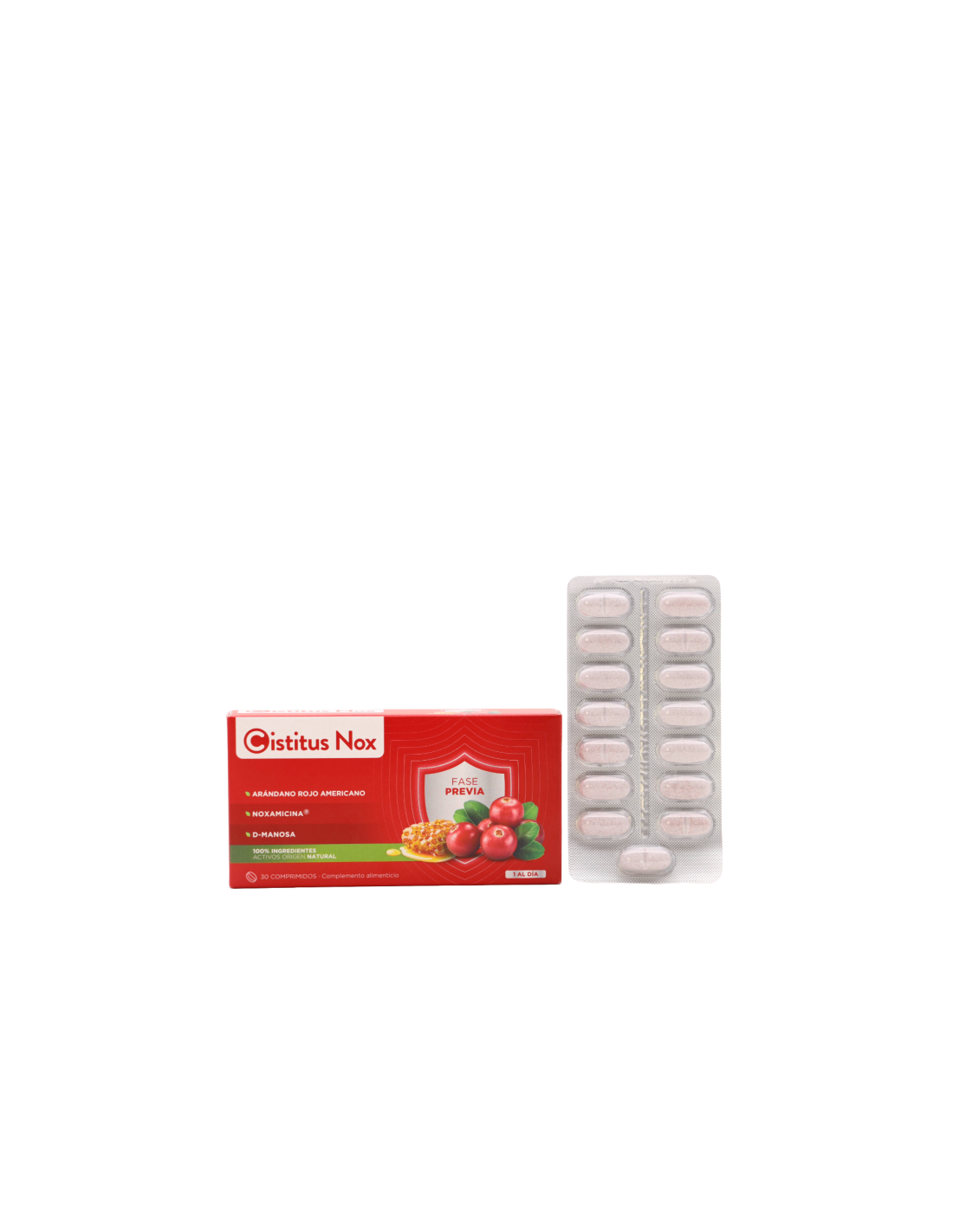 Cistitus Nox® está compuesto por una fórmula muy innovadora a base de Noxamicina®, Arándano Rojo americano y D-Manosa.